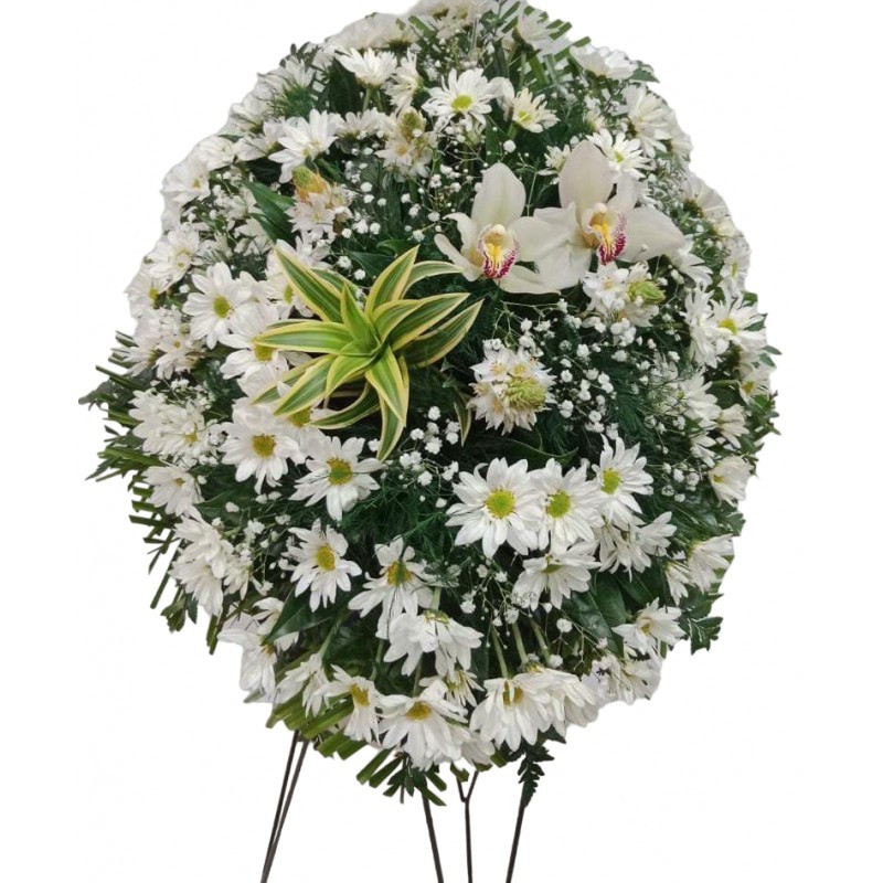 Arreglo floral con margaritas, orquídeas y estrellas de belén.