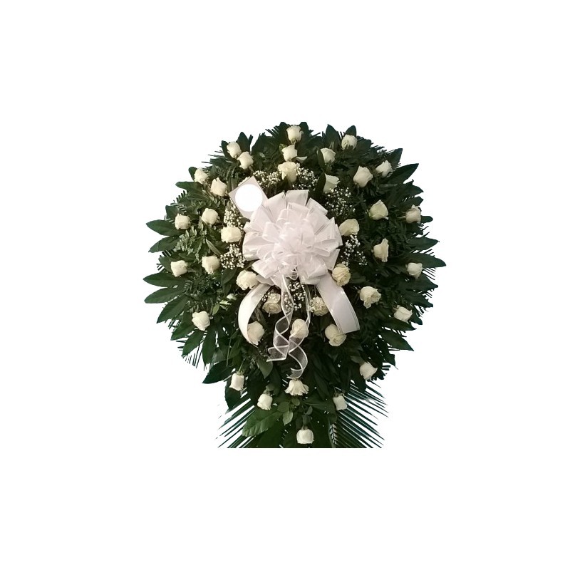 Acompaña a tus seres queridos con este magnífico arreglo floral elaborado con delicadas rosas blancas acompañado de fino follaje verde y tarjeta con mensaje personalizado para la ocasión.